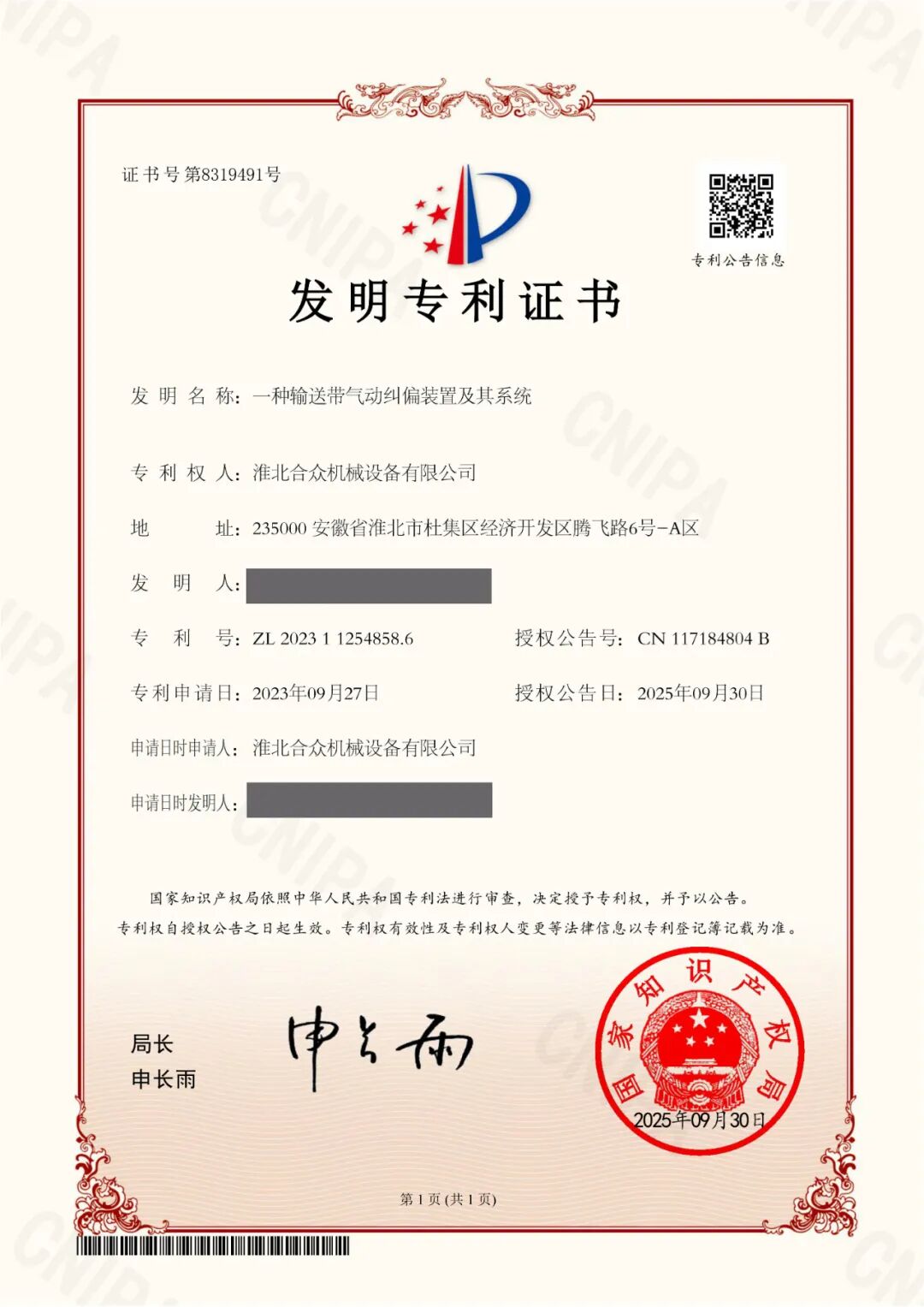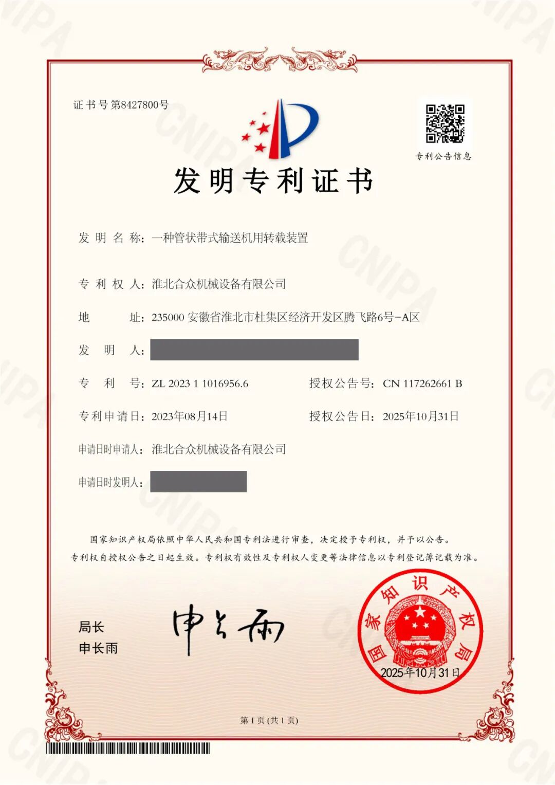 喜訊!合眾機(jī)械新增兩項(xiàng)發(fā)明專利發(fā)表時(shí)間:2025-11-07 07:58 ![]() 點(diǎn)擊“藍(lán)字” 關(guān)注我們 近日,合眾機(jī)械再獲兩項(xiàng)國(guó)家發(fā)明專利授權(quán):“一種管狀帶式輸送機(jī)用轉(zhuǎn)載裝置”與“一種輸送帶氣動(dòng)糾偏裝置及其系統(tǒng)”。這兩項(xiàng)技術(shù)突破,標(biāo)志著公司在輸送裝備智能化與可靠性領(lǐng)域邁出了堅(jiān)實(shí)一步,為行業(yè)提供了更精密、更穩(wěn)定的技術(shù)解決方案。 “管狀帶式輸送機(jī)用轉(zhuǎn)載裝置”實(shí)現(xiàn)了物料在封閉系統(tǒng)中的高效過(guò)渡與無(wú)縫轉(zhuǎn)接,大幅降低揚(yáng)塵與溢料,在環(huán)保與能效層面樹(shù)立了新標(biāo)準(zhǔn);“輸送帶氣動(dòng)糾偏裝置及其系統(tǒng)”通過(guò)智能感知與實(shí)時(shí)氣壓調(diào)控,精準(zhǔn)抑制跑偏現(xiàn)象,有效提升設(shè)備在復(fù)雜工況下的運(yùn)行穩(wěn)定性與使用壽命。 面向未來(lái),合眾機(jī)械將持續(xù)聚焦輸送系統(tǒng)的智能化升級(jí)與綠色運(yùn)行,推動(dòng)核心部件向感知一體、主動(dòng)調(diào)控方向發(fā)展。我們?cè)概c行業(yè)伙伴協(xié)同共進(jìn),以自主創(chuàng)新夯實(shí)裝備根基,以精準(zhǔn)技術(shù)重塑輸送未來(lái)。 創(chuàng)新引領(lǐng),精密驅(qū)動(dòng)。合眾機(jī)械,致力于成為智能輸送領(lǐng)域的堅(jiān)實(shí)力量。 ![]() ![]() 企業(yè)文化 愿景:打造智能環(huán)保輸送裝備全球標(biāo)桿品牌。 使命:踐行安全高效、綠色低碳的科技創(chuàng)新理念,為輸送裝備的無(wú)人化值守保駕護(hù)航! 價(jià)值觀:真誠(chéng)、付出、擔(dān)當(dāng)、開(kāi)拓、創(chuàng)新、利他 定位:做智能環(huán)保輸送裝備粉塵治理的權(quán)威專家。 宗旨:專注智能環(huán)保輸送裝備的研發(fā)與服務(wù),努力實(shí)現(xiàn)客戶、企業(yè)和員工共贏。 經(jīng)營(yíng)理念:追求全體員工物質(zhì)與精神兩方面幸福的同時(shí),為社會(huì)的進(jìn)步與發(fā)展做出貢獻(xiàn)。 ![]() ![]() ![]() 掃碼關(guān)注我 一起感受機(jī)械魅力 淮北合眾機(jī)械設(shè)備有限公司 電話:0561-3072332 傳真:0561-3072076 郵箱:hbhezhong@163.com 網(wǎng)址:www.nicoleo.net